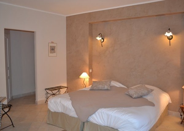 Cette chambre lumineuse, aux teintes très douces, est située au cœur de la maison.